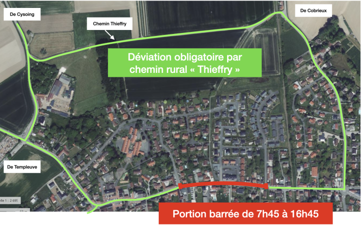 A partir du lundi 26 janvier et jusqu'au mercredi 18 février, la rue de la Libération sera fermée à la circulation de la rue Saint Exupéry à la rue du Hameau de la Brienne de 7h45 à 16h45.