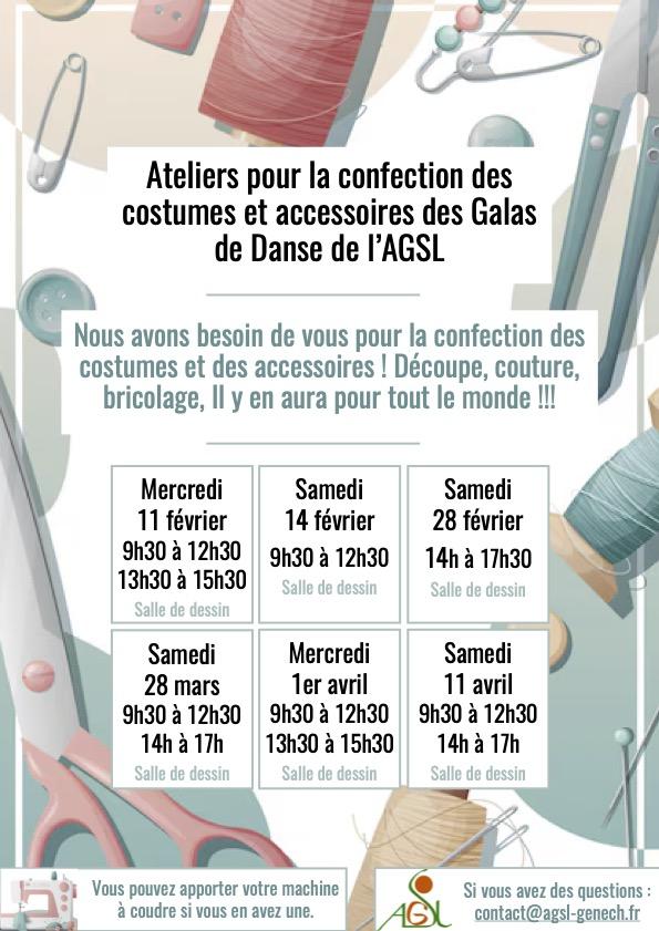 Ateliers pour la confection des costumes et accessoires des Galas de Danse de l'AGSL