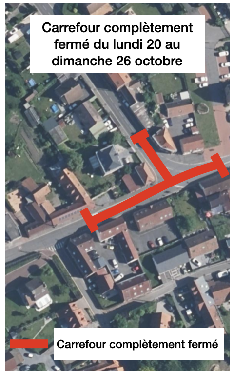 Du lundi 20 au dimanche 26 octobre le carrefour sera complètement fermé à la circulation jour et nuit.